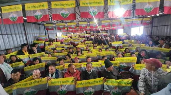 दार्जिलिङ : 500 भन्दा अधिक परिवार भारतीय गोर्खा प्रजातान्त्रिक मोर्चामा सामेल भएको छ। दार्जिलिङको जज बजारस्थित भागोप्रमो-को केन्द्रीय कार्यालयमा आयोजित सामेल कार्यक्रममा 500 भन्दा अधिक परिवार पार्टीमा सामेल भएको केन्द्रीय प्रवक्ता केशव राज पोख्रेलले जानकारी दिएका छन्। तिनले दिएको जानकारी अनुसार पार्टीमा सामेल हुनेहरूमा हाम्रो पार्टी-का जीटीए सभामा प्रार्थी रहेको चुङथुङ मारेबुङ समष्टिबाट बन्टी गुरुङ, तकदाह टिस्टा भ्याली समष्टिबाट प्रबल थापा अनि हाम्रो पार्टी-का पुबछिरिङ पाण्डम समष्टिका अध्यक्ष वसन्त खालिङ छन्। यसैगरी, रङली रङलियट समष्टिबाट तृणमूलका नेता सुदेश सुब्बा, पुबछिरिङ पाण्डमबाट मधुकर शर्मा (जीटीए सभाको निर्दलीय प्रार्थी), यहीँ समष्टिका अध्यक्ष (गोजमुमो) साथै बिमल गुरुङको निकटका नेता समीर कुलुङ राई, जीएनएसएफ, दार्जिलिङ शाखाका पूर्व सचिव प्रिया शर्मा पनि भागोप्रमो-मा सामेल भएका छन्। ती सामेलहुनेहरूलाई प्रमोस्कर ब्लोनले दलीय झण्डा प्रदान गरेर आफ्नो पार्टीमा स्वागत जनाए। यस अवसरमा प्रमोस्कर ब्लोनले भने, “चुङ्थुङ्ग मारेबुङका बन्टी गुरुङ भाइले म सँग बसेर ममु खायो भनेर उ माथि हाम्रो पार्टीले सङ्कुचित राजनीति गर्यो।” तिनले अझ भने, “मैले जति हाम्रो पार्टीमा बनाएको छु, त्यो चाहिँ म भत्काउँछु। त्यो मेरो अधिकार हो।”