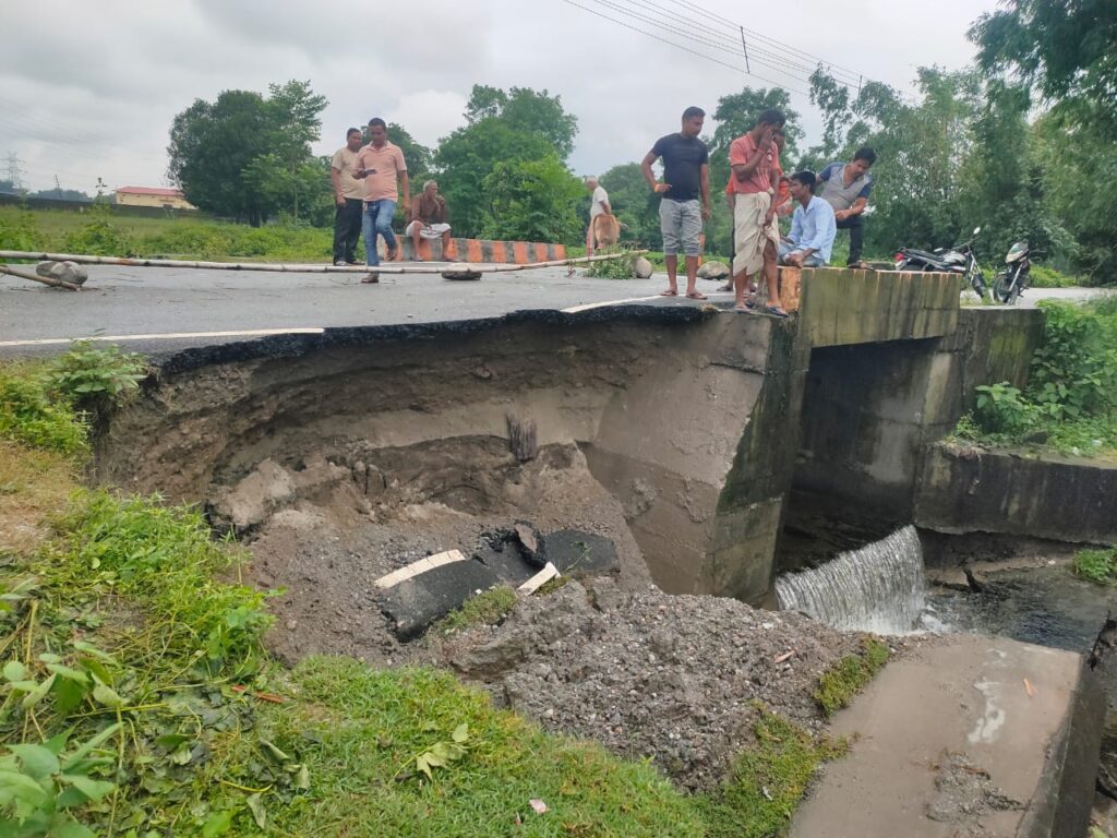 फुलबारी : अधिक वर्षाले गर्दा कल्भर्ट र सडकको एकांश भाग धस्केपछि कुनै ठुलो दुर्घटना हुन सक्ने गाउँलेहरूले आशंका व्यक्त गरेका छन्। उक्त घटना फुलबारी 2 नम्बर ग्राम पञ्चायतको कञ्चनबारी इलाकाको हो। घटनाको खबर पाएर फुलबारी 2 नम्बर ग्राम पञ्चायत प्रधान रफिकुल इस्लामले इलाकाको निरीक्षण गरे। स्थानीय सूत्रले दिएको जानकारी अनुसार केही दिनदेखि लगातार परिरहेको पानीले गर्दा कञ्चनबारी इलाकाको एउटा कल्भर्ट र सडकको केही अंश धस्किएको छ। यो सडक महत्वपूर्ण सडक हो। प्रतिदिन उक्त सडक भएर धेरैजना मानिसहरू आवत-जावत गर्ने गर्दछन्। यसबाहेक यहाँ केही इन्डस्ट्रीहरू पनि रहेको छ। कुनै पनि समय यहाँ अप्रिय घटना घट्न सक्नेछ। यसैले चाँडै नै उक्त सडकको मरमति गरिदिने गाउँलेहरूले माग गरेका छन्। यस विषयमा फुलबारी 2 नम्बर ग्राम पञ्चायत प्रधान रफिकुल इस्लामले भने, आज उक्त इलाकाको निरीक्षण गरे। कल्भर्टको केही अंश धस्किएर विपदजनक अवस्थामा रहेको छ। सडकको एकापट्टिको अंश हाल बन्द राखिएको छ। यसको चाँडै मरमति गरिदिनको लागि यसबारे उच्च अधिकारीहरूलाई अवगत गराउने तिनले बताए।