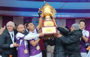 खरसाङ (निसं): खरसाङमा सम्पन्न भइरहेको एघारौँ सहिद गोल्ड कपमा युनाईटेड ब्रदर कालेबुङ तेस्रोपल्ट च्याम्पियन बनेको छ। खरसाङ गोर्खा पार्वत्य खेलकूद संघ तथा जीटीएको युवा मामिला अनि खेलकूद विभागको संयुक्त आयोजनामा गत 17 जनवरीदेखि खरसाङको चानबारी खेल मैदानमा भइरहेको एघारौँ सहिद गोल्ड कपको फाइनल खेल आज युनाईटेड ब्रदर कालेबुङ बनाम कञ्चनजङ्घा स्पोर्टिङ क्लब केएफसीमाझ सम्पन्न भयो। यस फाइनल खेलको लगभग 15 मिनटमा कालेबुङको जर्सी नम्बर 4 रोशन राईले गोल गरेर बढत बनाएको थियो अनि पहिलो हाफको खेल समाप्त हुँदा खेल 1-0 रहेको थियो। दोस्रो हाफमा पनि युनाईटेड ब्रदर कालेबुङको जर्सी नम्बर 8 बिक्की थापाले फ्रि किकमा दर्शनीय गोल गरेर खेल 2-0 बनाएका थिए। यलको लगत्तै कालेबुङका खेलाडीले केएफसीको गोल पोष्ट नजिकबाट हिर्काएको बल गोल पोष्टमा लागेर फर्किएको थियो। अन्तिम समयसम्म पनि केएफसीले गोल गर्ने प्रयास गरे तापनि कुनै गोल गर्न सकेन। फाइनल खेलमा कालेबुङका खेलाडीहरूले प्राय: नै बल आफ्नो वंशमा राखेको देखियो।