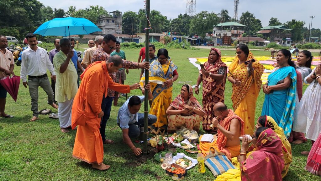 राजगञ्ज, 4 सेप्टेम्बर (निस): आगोमोनी आमबारी सार्वजनिक दुर्गा पुजा कमिटीले खाँबा पुजाको माध्यमले दुर्गा पुजाको तयारी शुरू गरेको छ। राजगञ्ज ब्लकको आमबारी तारघेरा मैदानमा कमिटीका सदस्यहरूले बुधवार खाँबो पुजा गरे। कमिटीले यस वर्ष पहिलो पल्ट दुर्गा पुजाको आयोजना गरिरहेको छ। पुजा पण्डालको थिम मध्य प्रदेशको स्वर्ण मन्दिर रहेको बताइएको छ।