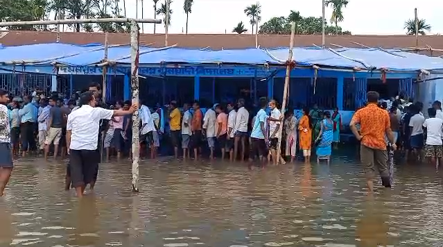 अलिपुरद्वार : मतदान केन्द्र जलमग्न भएपछि मतदाताहरू पानीको पर्वाह नगरी उत्साहित बनेर आज बिहानैदेखि मतदान गर्नको लागि मतदान केन्द्रमा लाइनमा उभिरहेको देखियो। अलिपुरद्वारको 1 नम्बर ब्लक अन्तर्गत भोलारडाबरी दमनपुर प्राथमिक विद्यालयको प्राङ्गणमा यस प्रकारको दृश्य देखियो। प्राप्त जानकारी गत रातभरि परेको पानीले विद्यालय प्राङ्गणमा रहेको मतदान केन्द्र जलमग्न बनेको छ। उक्त मतदान केन्द्रमा 12/163 र 12/164 नम्बर बुथको मतदान चलिरहेको छ। जल निकासी व्यवस्था नरहेकोले गर्दा उक्त इलाका जलमग्न बनेको बताइएको छ। मतदाताहरू बाध्य भएर आज बिहानैदेखि लाइनमा उभिएर मतदान गरिरहेका छन्। आज बिहानैदेखि यस्तो परिस्थिति रहे तापनि सेक्टर अफिसर देखा नपरेको आरोप रहेको छ।