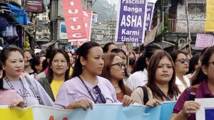 दार्जिलिङ (निसं): आशा कर्मीहरूले वेतन वृद्धि गरिनु पर्ने, सरकारी कर्मचारीको दर्जा दिनु पर्ने लगायत विभिन्न मागलाई लिएर आज दार्जिलिङ सहरमा पथ अवरोध गर्नको साथै एउटा विराट रैली पनि निकाल्यो। दार्जिलिङको रेलवे स्टेशन परिसरबाट आज आशा कर्मीहरूले रैली निकालेपछि चोक बजारमा पुगेर आफ्नो मागको समर्थन गर्दै लगभग 10 मिनटसम्म तिनीहरूले पथ अवरोध गरे। यसपछि तिनीहरू दार्जिलिङ जिल्ला अस्पताल परिसरमा पुगेर नाराबाजी गरे। यस अवसरमा आशाकर्मी सारिका राईले भनिन्, हामीले मासिक तनखा एकदमै कम्ति 45 सय रूपियाँ मात्र पाउँछौ तर काम धेरै गर्नु पर्छ। त्यो पनि मधेशमा भन्दा हामीले विलम्ब गरेर पाउँछौ।