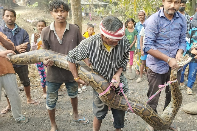 बाघडुग्रा: बाघडुग्राको कमलपुर चियाकमानबाट विशालकाय अजिङ्गर उद्धार भएको छ। प्राप्त जानकारी अनुसार आज चियाश्रमिकहरूले कमान नजिकै बाँसघारीमा 15 फुट लामो अजिङ्गर देखेपछि घटनाबारे वन विभागलाई खबर दिए। घटनाको खबर पाएर बाघडुग्रा वन विभागका कर्मीहरू घटनास्थलमा पुगे। यसपछि स्थानीय मानिसहरूले नै उक्त अजिङ्गरलाई पक्रेर वन विभागलाई सुम्पिदिए। उक्त अजिङ्गरको शारीरिक जाँच गरेपछि जङ्गलमा छोडिदिने वन विभाग सूत्रले जनाएको छ। उक्त अजिङ्गरलाई हेर्नको लागि धेरै संख्यामा मानिसहरूको भीड जमेको देखियो।