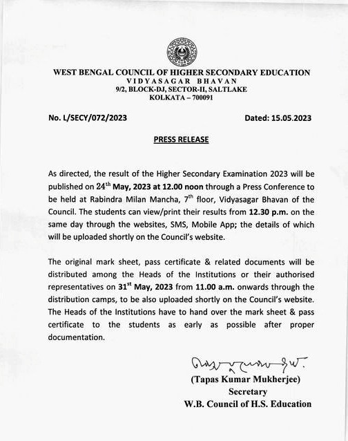 सिलगढी: बंगाल बोर्डको बाह्रौँ श्रेणीको परीक्षाको रिजल्ट आगामी 24 मईको दिन 12 बजी प्रकाशित गरिने भएको छ। विद्यार्थीहरूले उक्त दिनकै 12.30 बजेदेखि विद्यार्थीहरूले वेबसाइट, एसएमएस तथा मोबाइल एप मार्फत रिजल्ट हेर्न अथवा डाउन लोड गर्न सक्ने छन्। यसबारे आज पश्चिम बंग काउन्सिल अफ् हायर सेकेन्डरी एडुकेसनको बैठक पछि एउटा विज्ञप्ति जारी गरेर जानकारी गराएको छ। यसको साथै विद्यार्थीहरूले आ-आफ्नो मार्कसिट तथा पास सर्टीफिकेट 31 मईको दिन 11 बजेदेखि राज्यको प्रत्येक स्कुलहरूबाट लिन सक्ने बताइएको छ।