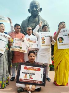 नयाँ दिल्ली (निसं): पश्चिम बंगाल राज्यमा भएको शिक्षा विभागमा व्यापक घोटाला तथा शिक्षा प्रणालीमा भइरहेको पतनको प्रतिवादमा आज दिल्लीस्थित सांसद भवन परिसरमा रहेको महात्मा गाँधीको मूर्ती अघिल्तिर बंगालका भाजपा सांसदहरूले विक्षोभ प्रदर्शन गरे। यस अवसरमा भाजपा केन्द्रीय प्रवक्ता तथा दार्जिलिङका सांसद राजु विष्ट पनि प्रमुख रूपमा उपस्थित थिए। विक्षोभ प्रदर्शन गर्ने बंगालका सांसदहरूले हातमा प्ला कार्डहरू पनि बोकेका थिए। यसबारे सांसद विष्टले जारी एउटा विज्ञप्तिमा जानकारी दिँदै बताए अनुसार टीएमसी-का नेताहरूले धेरै मात्रामा शिक्षक भर्नाको नाममा घोटाला गरेको कुरा अहिले केन्द्रीय एजेन्सीहरूद्वारा एकपछि अर्को उजागर गर्दै आइरहेको छ। बंगालमा शिक्षा विभागमा भएको घोटालामा सत्तारूढ पार्टीका केन्द्रीय नेतृत्वगण तथा मन्त्रीहरू नै संलग्न रहेको कुरालाई उदाहरणको रूपमा पेश गर्दै तिनले बंगालका पूर्व शिक्षामन्त्री पार्थ च्याटर्जीलाई शिक्षक नियुक्तिमा घोटाला गरेको आरोपमा नगद 55 करोड रूपियाँ सहित केन्द्रीय जाँच एजेन्सीले पक्राउ गरिसकेको कुरा स्मरण गराएका छन्। यसैगरी, मन्त्री परेश अधिकारीको छोरीलाई अवैध रूपमा शिक्षकको रूपमा नियुक्ति गरेको मामिलामा कलकता उच्च अदालतले तिनलाई नोकरीबाट बर्खास्त गर्नको साथै तिनलाई प्रदान गरेको सबै मासिक वेतन समेत विभागलाई फर्काइदिने आदेश सुनाएको थियो। तिनले अझ भनेका छन्, सीबीआई अनुसार बंगालमा 21 हजार शिक्षकहरूको नियुक्ति अवैध रूपमा भएको छ। शिक्षक भर्नामा मात्र घोटाला नभएर स्कुलको ‘सी’ अनि ‘डी’ ग्रूप स्टाफको नियुक्तिमा समेत व्यापक घोटाला भएको उजागार भएपछि हालै कलकता उच्च न्यायालयले 1900 जना ग्रूप ‘डी’ स्टाफ अनि 842 ग्रूप ‘सी’ तथा 618 जना (सेकेन्डेरी स्तर) लाई समेत नोकरीबाट हटाइएको छ। यति मात्र नभएर, टीएमसी सरकारले बंगालमा कलेज तथा विश्वविद्यालयको उच्च पदहरूमा समेत अवैध रूपमा नियक्ति गरेको भाजपा सांसदहरूको भनाई रहेको छ।