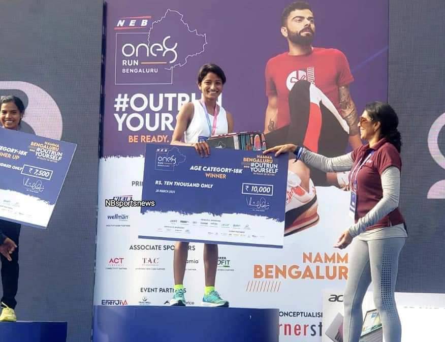 सिलगढी : सिलगढीको खोलाचन्द फाप्रीकी धावक प्रिया छेत्रीले आज बेङ्गलुरुमा सम्पन्न वन 8 रन-मा पहिलो स्थान ओगट्न सफल बनेकी छन्। भारतीय क्रिकेटर विराट कोहलीको ब्राण्ड वन 8-द्वारा आयोजना गरिएको उक्त दौड़ प्रतियोगितामा प्रियाले आयु वर्ग (18 किलोमीटर, 16-देखि 25 वर्ष)-मा भाग लिएर 1 घण्टा 28 मिनटमा दौड़ पुरा गरेर पहिलो स्थान हासिल गरेकी छन्। विराट कोहलीले फ्ल्याग अफ् गरेपछि उक्त दौड प्रतियोगिता शुरू गरियो। स्मरण रहोस्, गत 22 मार्चमा तिनी आफ्ना बाबु प्रकाश छेत्रीसित उक्त प्रतिगोयितामा अंश ग्रहण गर्नको लागि बेङ्गलुरु प्रस्थान गरेकी थिइन्।
