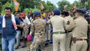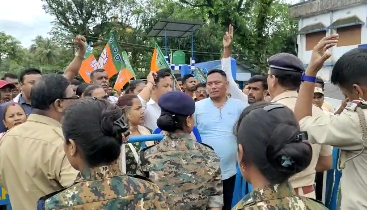 तथापि ती भाजपा कार्यकर्ताहरूले उक्त ब्यारिकेड तोडेर अघि बढ्ने प्रयास गरे। यस अवधि अघि बढ्न नदिएपछि भाजपा कार्यकर्ताहरूको पुलिससित झडप भयो। यसपछि आक्रोसित बनेका भाजपा कार्यकर्ताहरूले कालचिनी बीडीओ कार्यालयको संलग्नमा रहेको अलीपुरद्वार राज्य मार्ग अवरोध गरेर विरोध प्रदर्शन गर्नको साथै व्यापक नाराबाजी पनि गरे। यस अवधि भाजपा विधायक विशाल लामा लगायत भाजपाका स्थानीय शिर्ष नेतागण तथा कार्यकर्ताहरू उपस्थित थिए।