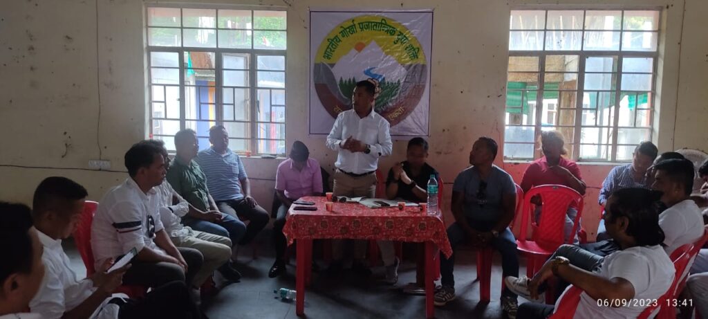 कालीझोडा (निसं): खरसाङ महकुमा अन्तर्गत सिटोङ तीन ग्राम पञ्चायतको कालीझोडास्थित सार्वजनिक भवनमा भारतीय गोर्खा प्रजातान्त्रिक युवा शक्ति केन्द्रिय समितिको सभा केन्द्रिय युवा अध्यक्ष अमृत योञ्जनको अध्यक्षतामा सम्पन्न भयो। उक्त सभालाई केन्द्रिय महासचिव प्रा.सदीप प्रधानले सञ्चालन गरेका थिए। सभालाई कालेबुङबाट केन्द्रीय उपाध्यक्ष ईमान चाम्लिङ, खरसाङबाट महकुमा युवा शक्ति महासचिव विज्ञान मिश्र, गोरुबथान महकुमा समिति अध्यक्ष अनुप गुरुङ, हाइवेबाट केन्द्रीय युवा शक्ति सदस्य सुरज तामङ, युवा शक्ति उपाध्यक्ष अरुण छेत्री, केन्द्रीय सहसचिव गुर्दीप सिम्बोक (सुब्बा), केन्द्रीय युवा शक्ति प्रवक्ता अनित खाती आदिले सम्बोधन राखे। सभाको विशेष औचित्य बताउँदै केन्द्रीय युवा शक्ति अध्यक्ष अमृत योञ्जनले भारतीय गोर्खा प्रजातान्त्रिक मोर्चाको स्थापना दिवस कालेबुङ मेला ग्राउन्डमा सम्पन्न हुने र उक्त कार्यक्रममा सम्पूर्ण युवा शक्तिका समष्टि-समष्टिबाट व्यापक रूपमा उपस्थिति दिने आह्वान गरे। यसको साथै वर्तमान राजनैतिक चलखेलको संक्षिप्तमा प्रकाश पारे अनि नकरात्मक सोंचहरुबाट माथि उठेर आफ्नो कार्यलाई अघि बढाउने सबैलाई सुझाउ दिएका छन्। तिनले आफ्नो सम्बोधनमा आगामी 16 सेप्टेम्बर 2023 युवा शक्तिको तेस्रो स्थापना कार्यक्रम भव्य रुपमा सम्पन्न गर्ने र उक्त कार्यक्रम दार्जिलिङमा हुने अनि केन्द्रीय संस्थापक पार्टी अध्यक्षसित युवा शक्तिको भेटवार्तापछि पुनः एउटा आकस्मिक सभा राखेर कार्यक्रमको रुपरेखा तय गर्ने जानकारी सभालाई गराए। सभामा सुनिल राईलाई केन्द्रीय युवा शक्तिको मिडिया प्रभारीको जिम्मेवारी सुम्पेको घोषणा पनि गरियो। सभामा केन्द्रीय उपाध्यक्ष निरेन लामा, साङ्ठनिक सचिव सञ्जय गुरुङ, कोषाध्यक्ष महम्मद साजिद लगायत अन्य केन्द्रीय नेतृत्वहरू उपस्थित थिए।