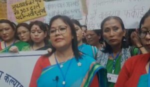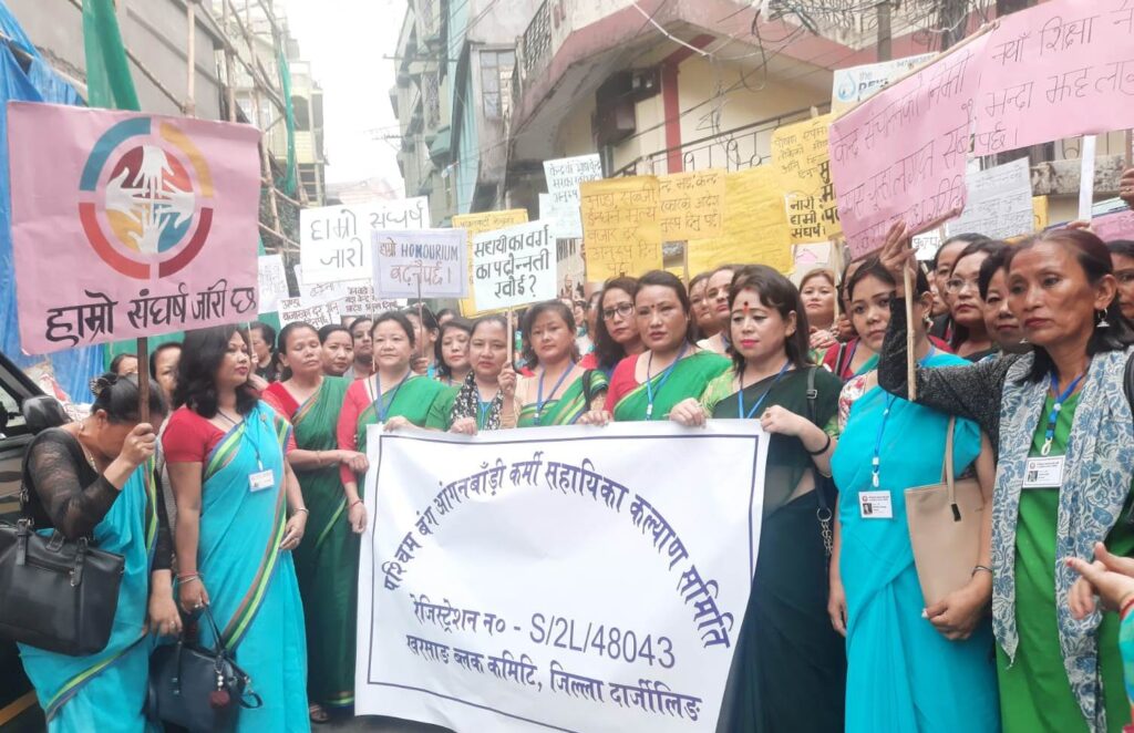 खरसाङ (निसं) : पश्चिम बंगाल आँगनवाडी कर्मी सहायिका कल्याण समिति खरसाङ ब्लक कमिटीको आयोजनामा विभिन्न मागहरूलाई लिएर रैली निकाल्नको साथै खरसाङको आँगनवाडी प्रोजेक्ट अफिसर (सीडीपीओ)- लाई ज्ञापन पनि चढाए। यसै क्रममा आँगनवाडी कर्मीहरू र सहायकहरूद्वारा खरसाङको नयाँ बजारस्थित कप्तान रामसिंह ठाकुरी चोकदेखि रैली निकालेर खरसाङको नयाँ बजारस्थित आँगनवाडी खरसाङको कार्यालयमा पुगेर सीडीपीओ श्यामसन तामाङलाई ज्ञापन बुझाए। आज खरसाङ क्षेत्रका आँगनवाडी कर्मीहरूद्वारा जम्मा 24 वटा मांगहरू लिएर रैलीको साथमा ज्ञापन दिने कार्य गरेका छन्। यसमा आँगनवाडी कर्मीहरू र सहायकहरूका वेतन एकदमै कम्ती रहेको जुन अहिलेको महँगाइमा केही नहुने भएकोले वेतनमा बढ़ोत्तरी गरेर कर्मीहरूको एक्काइस हजार अनि सहायकहरूका अठार हजार हुनु पर्ने मांग गरेका छन् । त्यसरी नै आँगनवाडी कर्मीहरू र सहायकहरूलाई राज्य र केन्द्रबाट दिइने वेतन प्रत्येक महिनाको एक तारिख नै पस्नु पर्ने मांग गरेका छन्।