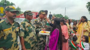 फुलबारी: रक्षा बन्धन अथवा राखी आउन अब केही दिन मात्र बाँकी रहेको छ। यसभन्दा अगावै आज सिलगढीको एउटा समाजसेवी संगठनले बीएसएफ-का जवानहरूलाई राखी बाँधिदिएर रक्षा बन्धन पर्व मनाए। संगठनका सदस्यहरू तथा ससाना नानीहरूले आज फुलबारी सिमानामा बीएसएफ-का जवानहरूको हातमा राखी बाँधिदिनको साथै मिठाई खुवाएर रक्षा बन्धन पालन गरे। आज रक्षा बन्धन पर्व मनाउन पाउँदा सीमामा कार्यरत बीएसएफका जवानहरू निक्कै खुसी भए।