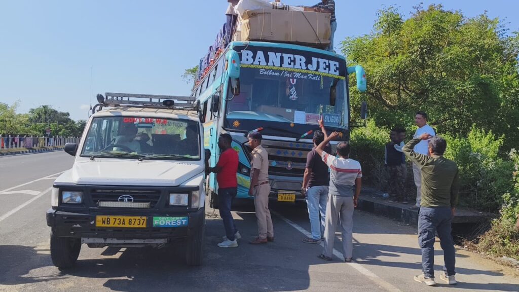 बाघडुग्रा: बाघडुग्रा वन विभागले आज कोलकाताबाट सिलगढीतर्फ आइरहेको एउटा बसको छतबाट अधिक मात्रामा काठको फर्निचर उद्धार गर्नको साथै 2 जनालाई हिरासतमा लिएको छ। गोप्य सूचनाको आधारमा वन विभागले आज बाघडुग्रा 31 नम्बर राष्ट्रिय राजमार्गमा एउटा यात्री बोकेको बसलाई रोकेर छानबीन गर्दा लाखौँ रुपियाँको काठको फर्निचर उद्धार गरेको बताइएको छ। कोलकाताबाट काठको फर्निचर सिलगढी ल्याइरहेको थियो भने बस चालकले उक्त समानको वैध कागजपत्र देखाउ नसकेपछि घटनामा बस चालक र खलासीलाई हिरासतमा लिएको छ। यस विषयमा खरसाङ डिभिजनका एडीएफओ भूपेन विश्वकर्माले बताएअनुसार गोप्य सूचनाको आधारमा अभियान चलाएर अधिक मात्रामा काठको फर्निचर उद्धार गरेको छ। उद्धार गरेको फर्निचरको अनुमानित बजार मूल्य लाखौँ रुपियाँ रहेको छ। घटनामा दुईजनालाई हिरासतमा लिए तापनि पछि व्यक्तिगत बन्डमा छोडिदिएको छ। वन विभागले घटनाको जाँच सुरू गरेको छ।