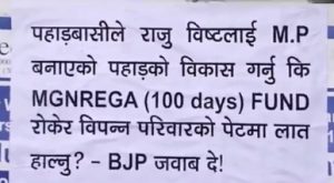 दार्जिलिङ (निसं): सांसद राजु विष्ट विरुद्ध आज दार्जिलिङ शहरमा तृणमूल कङ्ग्रेस पार्टीले पोस्टरिङ गरेको छ। [...]