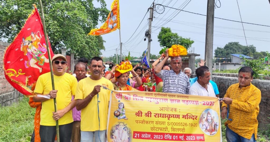 श्री श्री शिव महापुराण ज्ञान महायज्ञको आज पहिलो दिन बिहान अध्यात्मिक धर्म गुरुहरूको उपस्थितिमा भक्तजनहरूले भक्तिभावको साथमा कलश यात्रा निकालेर नगर परिक्रमा गरे। यस 11 दिन व्यापी चल्ने धार्मिक ज्ञान महायज्ञमा परम योगिनी विदुषी बृन्दा बरालको मुखरबृन्दबाट कथा प्रवचनको साथमा विविध भक्तिमय साङ्गीतिक एवं सांस्कृतिक कार्यक्रमहरू प्रस्तुत गरिने छ। उक्त 11 दिवसीय धार्मिक अनुष्ठानमा श्री श्री राधाकृष्ण मन्दिर पुजा आयोजक समितिका सभापति सचिन छेत्री अनि सचिव शंकर छेत्रीले सम्पूर्ण भक्तजनहरुलाई हार्दिक स्वागत जनाएका छन्।