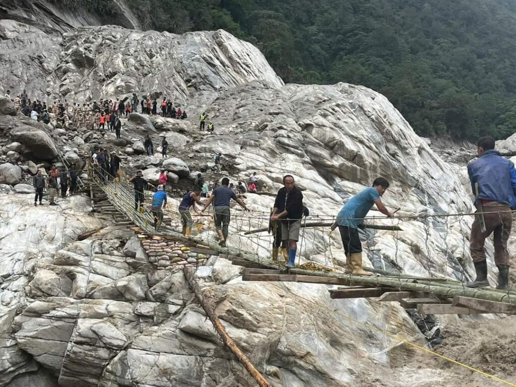 सिक्किम: उत्तर सिक्किमको चुङथाङमा एउटा अस्थायी बाँसको पुल निर्माण गरिएको छ। उक्त बाँसको पुलले चुङथाङलाई पेगोङसँग जोड्दछ। चुङथाममा फँसेका पर्यटक तथा मानिसहरूलाई सकुशल त्यहाँबाट अन्यत्र लैजानको लागि उक्त अस्थायी बाँसको पुल निर्माण गरिएको हो। क्षेत्रीय विधायक तथा मन्त्री साम्दुप लेप्चाको निर्देशनमा सेना तथा स्थानीय स्वयंसेवकहरूको सहयोगमा उक्त अस्थायी बाँसको पुल निर्माण गरिएको बताइएको छ।