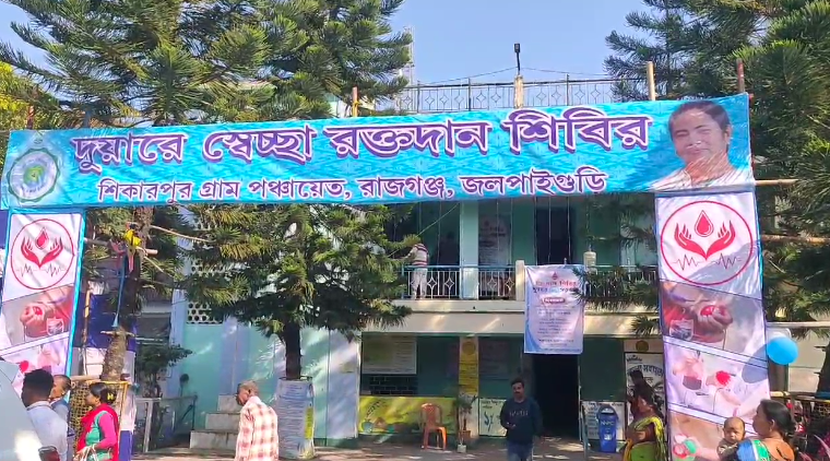 राजगञ्ज: राजगञ्जको द्वारे सरकार शिविरमा रक्तदान शिविरको आयोजना गरियो। राजगञ्ज ब्लकको शिकारपुर ग्राम पञ्चायत कार्यालय प्राङ्गणमा आठौँ चरणको द्वारे सरकार शिविर उक्त नयाँ पहल गरिएको हो। द्वारे सरकार शिविरमा सरकारी सुविधा लिनको साथै धेरै स्वेच्छाले रक्तदान गरे। यस विषयमा बीडीओ प्रशान्त बर्मनले भने, द्वारे सरकार शिविरमा रक्तदान शिविरको आयोजना पहिला गरिएको थिएन। यसैले राजगञ्ज पञ्चायत समितिका सभापतिसित कुराकानी गरेर रक्तदान शिविरको आयोजना गरिएको हो। उक्त शिविरमा साधारण मानिसहरूले सरकारी परिसेवा उपलब्ध गर्नको साथै स्वेच्छाले रक्तदान पनि गरे। यस शिविरमा 300 युनिट रगत संग्रह गर्ने लक्ष्य राखिएको थियो।