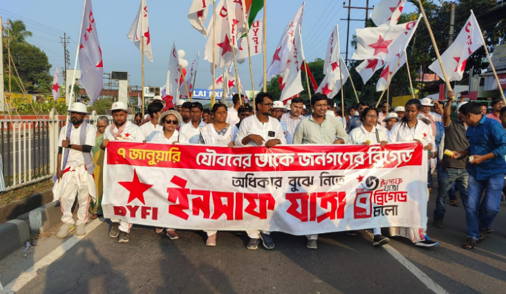 बाघडुग्रा : कार्य तथा शिक्षाको मागलाई लिएर डीवाईएफआई-को इन्साफ यात्रा आज सिलगढी हुँदै बाघडुग्रा आइपुगेको छ। डीवाईएफआई-को राज्य सदस्य मिनाक्षी मुखर्जी पैदल यात्रा गरेर गोसाईपुरबाट बाघडुग्राको बिहार मोडसम्म इन्साफ यात्रामा सामेल भइन्। यसपछि बिहारमोडमा जनसभालाई सम्बोधन गर्दै तिनले राज्यलाई कटाक्ष कसिन्। यस अवसरमा तिनले भनिन्, जसलाई हामीले भोट दिइरहेका छौँ, ट्याक्स दिइरहेका छौँ तिनीहरूले नै हाम्रो अधिकार खोसिरहेको छ। जनताको पैसा लुटेर आफ्नै खल्ती भरिरहेका छन्। यसैको विरोध गर्दै सडकमा ओर्लिएर आफूहरूले इन्साफ यात्रा गरेका हौँ। ज्योतिप्रिय मल्लिकले चोरी गरेकोले गर्दा नै तिनलाई पक्राउ गरिएको हो। तिनले 36 महिनादेखि लगभग 1 करोड 66 लाख नकली रासन कार्डको माध्यमद्वारा रासन चोरी गरिरहेका थिए। यो सम्पूर्ण घटनाबारे ममता ब्यानर्जीले कुनै ज्ञात नभएको भन्दै तिनले कटाक्ष कसिन्।
