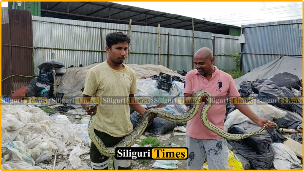 सिलगढी : सिलगढी नगरनिगमको 41 नम्बर वार्डस्थित डम्पिङ ग्राउन्ड संलग्न एउटा गोदाम भित्रबाट 7 फुट लामो अजिङ्गर उद्धार भएको छ। प्राप्त जानकारी अनुसार आज साँझ गोदाम भित्र केही मजदुरहरू काम गरिरहेको समय अजिङ्गर देखेपछि घटनाबारे सालुगढा वन विभाग तथा साँप रेसक्यू गर्नेलाई खबर दिए। घटनाको खबर पाएर साँप रेसक्यू गर्ने रवी दास घटनास्थलमा पुगेर उक्त अजिङ्गर उद्धार गरेर सालुगढा वन विभागलाई सुम्पिदिएको छ। वन विभागले उक्त अजिङ्गर सालुगढा रेञ्जको जङ्गलमा छोडिदिएको बताइएको छ।