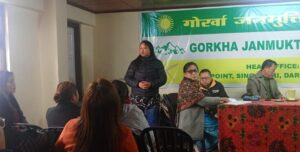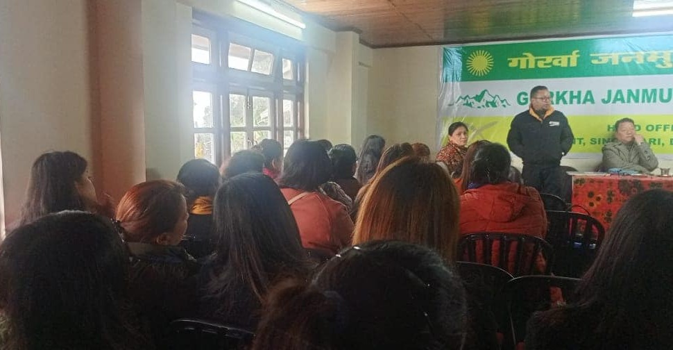 दार्जिलिङ (निसं): गोर्खा जनमुक्ति मोर्चाको केन्द्रीय पार्टी कार्यालय दार्जिलिङको सिहमारीमा गोर्खा जनमुक्ति महकुमा समिति नारी मोर्चा अनि शहर समिति नारी मोर्चाको संयुक्त आयोजनामा एउटा महत्वपूर्ण सभा सम्पन्न भयो। नारी मोर्चाको सांगठनिक गतिविधिहरुलाई अग्रगति दिनको निम्ति नारी मोर्चामा उर्जावान, क्षमतावान अनि कुशल नेतृत्वहरुको खाँचो रहेको महसुस गर्दै क्षमतावान अनि कुशल नारी नेतृत्वहरुलाई महकुमा अनि शहर समितिमा वर्तमान समयको निम्ति संयुक्त एवं अस्थायी रूपमा केही महत्वपूर्ण जिम्मेवारीहरू सुम्पिएको पार्टी सूत्रले जनाएको छ।