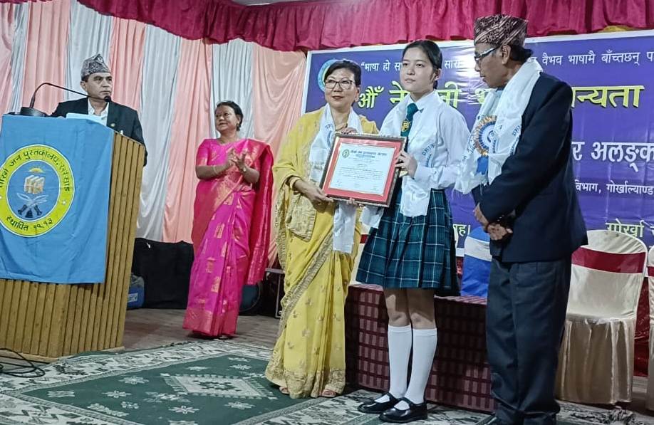 खरसाङ (निसं): विभिन्न प्रायोजकहरूका सहयोगमा गोर्खा जन पुस्तकालय खरसाङद्वारा वार्षिक रूपमा प्रदान गरिने शैक्षिक योग्यता पुरस्कार यसपाली पनि प्रदान गरियो। 32 औँ नेपाली भाषा मान्यता दिवस समारोहमा नै यसपालीको शैक्षिक योग्यता पुरस्कार प्रदान गरियो। पुस्तकालयका सभापति पूर्ण गुरुङ निरूपमको अध्यक्षता र कार्यकारी सभासद कल्पना प्रधानको प्रमुख आतिथ्यमा सम्पन्न नेपाली भाषा मान्यता दिवसमा नै विभिन्न शैक्षिक पुरस्कारहरू प्रदान गरियो। उक्त पुरस्कार अलंकरण समारोहलाई पुस्तकालयका उपाध्यक्ष प्रकाश प्रधानले सञ्चालन गरेका थिए।