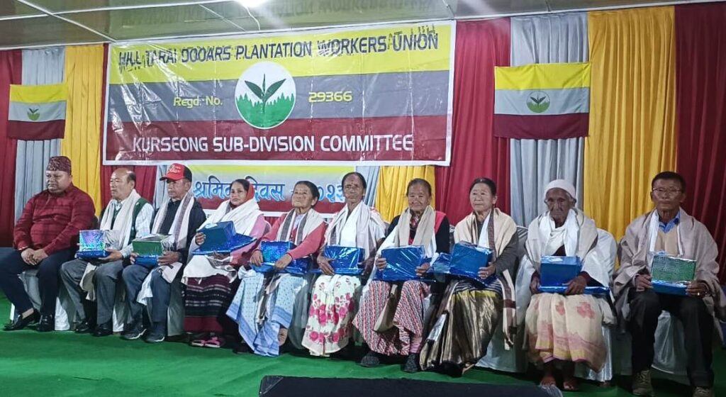 खरसाङ (निसं) : भारतीय गोर्खा प्रजातान्त्रिक मोर्चाको भ्रातृ संगठन हिल तराई डुवर्स प्लान्टेशन वर्कर्स युनियन खरसाङ महकुमा समितिको आयोजनामा खरसाङको गौरी शंकर चियाबारीस्थित सार्वजनिक भवनमा श्रमिक दिवस पालन गरिएको छ। उक्त कार्यक्रम हिल तराई डुवर्स प्लान्टेशन वर्कर्स युनियन खरसाङ महकुमा समितिको सभापति सागर गुरुङको अध्यक्षता र महासचिव भक्तिमान तामाङको सञ्चालनमा सम्पन्न भएको छ। उक्त श्रमिक दिवसको कार्यक्रममा प्रमुख अतिथिका रुपमा भारतीय गोर्खा प्रजातान्त्रिक मोर्चा केन्द्रीय अध्यक्ष एवं जीटीए चिफ् अनित थापा उपस्थित थिए। हिल तराई डुवर्स प्लान्टेशन वर्कर्स युनियन केन्द्रीय समितिको सह सचिव राजेस थापाले स्वागत सम्भाषण राखेको कार्यक्रममा सर्वप्रथम प्रमुख अतिथि जीटीए चिफ् अनित थापा लगायत विशिष्ठ अतिथहरूको बाहुलीबाट श्रमिकहरूका हक र अधिकारको लागि सहिद हुने सहिदहरूलाई धुप दीप प्रज्वलन साथै खदार्पण गरी श्रद्धाञ्जलि अर्पण गर्दै मौन धारण गरियो। कार्यक्रममा टुंग सन्त मेरिज समष्टिको जोनल कमिटीको सचिव मुकुन्द बम्जन, मिरिक महकुमा समितिका कार्यकारी अध्यक्ष योगेन छेत्री, सभासद प्रणाम रसाईली, हिल तराई डुवर्स प्लान्टेशन वर्कर्स युनियनको केन्द्रीय सल्लाहकार शेखरचन्द्र प्रधान आदिले वक्तव्य राखेका थिए। यसै कार्यक्रममा खरसाङ महकुमा अन्तर्गत पर्ने चियाबारीहरूका युनिट कमिटीको सभापति, सचिवहरूलाई पार्टी अध्यक्ष अनित थापाको बाहुलीबाट खदार्पण गरी स्वागत साथै चिनाजाना गराइयो। कार्यक्रममा प्रमुख अतिथिको रुपमा उपस्थित जीटीए चिफ् अनित थापालाई पनि युनियनको पक्षबाट संवर्द्धना जनाइयो।