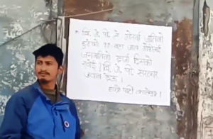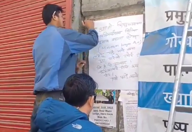 कालेबुङ : हाम्रो पार्टी कालेबुङ जिल्ला कमिटीले कालेबुङको विभिन्न ठाउँहरूमा भाजपाविरुद्ध व्यापक पोस्टरिङ गरेको छ। भारतीय जनता पार्टीले गोर्खाहरूसित गरेको वाचाहरू पुरा गरेनन् भन्दै हाम्रो पार्टी कालेबुङ जिल्ला कमिटीले कालेबुङ सहरमा व्यापक पोस्टरहरू टाँसेको बताइएको छ। भारतीय जनता पार्टीले पहाड, तराई, डुवर्स एवम् गोर्खा समुदायलाई स्थायी राजनैतिक समाधान, गोर्खा समुदायको 11 जात गोष्ठीलाई जन जातिमा समावेश गर्ने, चियाश्रमिकहरूलाई मिनिमम वेजेस लागू गर्ने लिखित वाचाहरू गरेका थिए।
