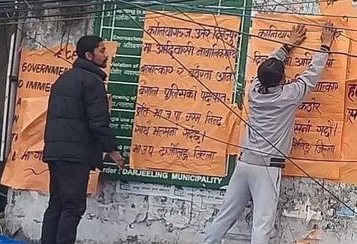 दार्जिलिङ (निसं): उतर दिनाजपुरको कालियागञ्जमा एकजना आदिवासी नाबालिकासँग भएको बलात्कार अनि हत्यामा पुलिस प्रशासन अनि राज्य सरकार दायी रहेको बताउँदै भाजपा दार्जीलिङ जिल्ला समितिले आज उक्त घटनाको विरोध स्वरुप दार्जिलिङ सहरमा पोस्टरिङ गरेको छ।
