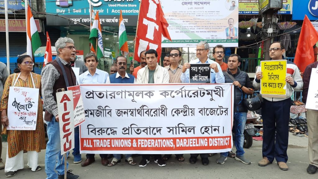 सिलगढी : केन्द्रको बजट पूर्ण रूपमा जन विरोधी रहेको छ। केवल कर्पोरेट सेक्टरहरूलाई मात्र सुविधा प्रदान गर्नको लागि उक्त बजट रहेको छ। उक्त बजटले गरिबहरूलाई कुनै प्रकारको सुविधा उपलब्ध गराएको छैन। यस प्रकारको अभियोग लगाउँदै अल ट्रेड युनियन एन्ड फेडरेसन दार्जिलिङ जिल्ला कमिटीले आज केन्द्रको बजटको विरोधमा आन्दोलन शुरू गरेको छ। संगठनको तर्फबाट आज सिलगढीको हासमी चोकमा विक्षोभ कार्यक्रमको आयोजना गरिएको छ। यस अवधि संगठनका सदस्यहरूले केन्द्रको बजटको विरोध जनाए। संगठनको तर्फबाट सीपीएम-का जिल्ला सचिव समन पाठकले भने, यो अमृतकाल बजट नभएर विषकाल बजट हो। यो बजटले केवल धनी मानिसहरूलाई मात्र सुविधा उपलब्ध गराउनेछ। केन्द्रको उक्त बजटको विरोधमा आफूहरूद्वारा लगातार आन्दोलन गरिने तिनले बताए।