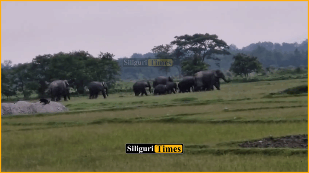 नक्सलबारी, 21 मई (निसं): खाना खोज्दै जङ्गलबाट निस्किएर बस्ती क्षेत्रमा पुगे गजराजहरू। नेपाल सीमा नजिक नक्सलबारीको नेहालजोतमा 9 वटा हात्तीको बथान देखिएको छ। स्थानीयहरूले बिहान हात्तीहरूलाई जङ्गलतर्फ फर्किंदै गरेको देखेको बताएका छन्। वन विभाग अनुसार नेहालजोत क्षेत्रमा हाल 9 वटा हात्ती छन्। हात्तीहरूको बथान खाना पाएर कालाबारी जङ्गलतर्फ फर्कन सक्ने अनुमान गरिएको छ। हात्तीहरू बस्ती क्षेत्रमा घुमेका थिए, तर अहिलेसम्म कुनै क्षतिको खबर प्राप्त भएको छैन। वन विभागले हात्तीहरूको बथानमाथि निगरानी राखिरहेको बताइएको छ।