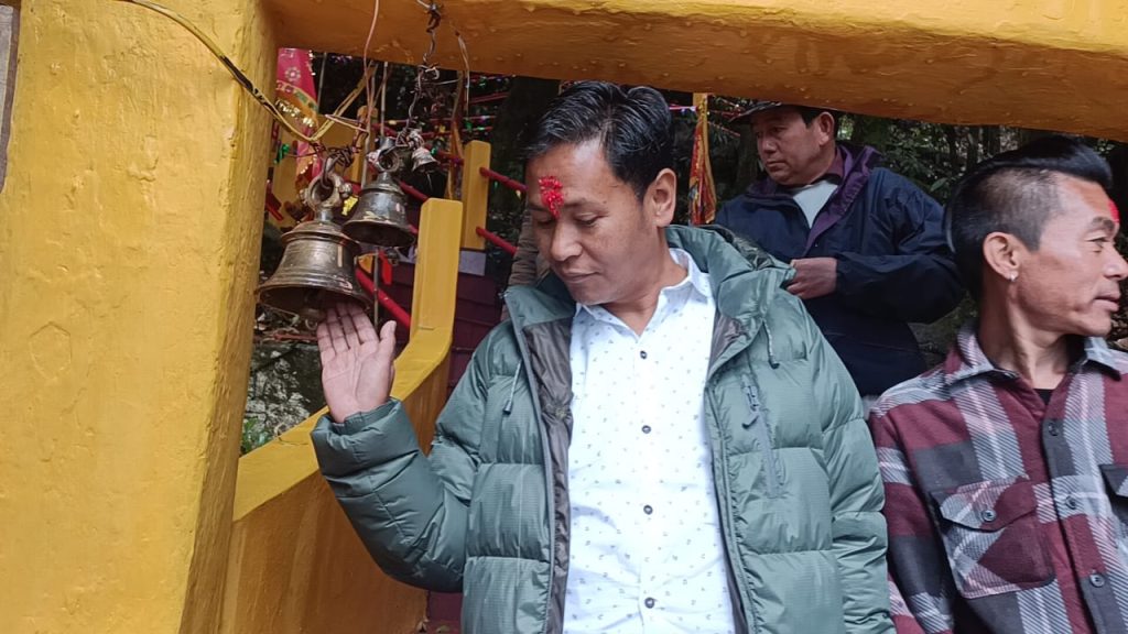 खरसाङ (निसं) : खरसाङ देवराली समष्टिको चित्रे बस्तीमा रहेको नौ कन्या सिंह देवी मन्दिरमा सम्पन्न पुजामा आज क्षेत्रीय सभासद श्याम शेर्पाले दर्शन गर्दै पुजा अर्चना गरे। वार्षिक रूपमा गरिने नव दुर्गा भनावीको पुजा आज पनि सम्पन्न गरियो। उक्त पुजामा खरसाङ देवराली समष्टिको सभासद श्याम लगायात नारी शक्ति खरसाङ देवराली समष्टिको सभापति सुष्मा मुखिया, साङ्गठनिक सचिव ललिता छेत्री लगायत युवा शक्तिका प्रतिनिधिहरू उपस्थित रहेका थिए। 200 वर्ष अघिदेखि पुजा अर्चना हुँदै आएको उक्त मन्दिरमा धेरै भक्तजनको आस्था र विस्वास रहेको छ। आज यहाँ पुजा अर्चना गर्नलाई खरसाङ देवराली समष्टीको विभिन्न क्षेत्रहरू जस्तै चिमनी, देवराली, मजुवा, चैतेपानी, डाउहिल, भिक्टोरिया, खुन्द्रुके बस्ती लगायत अन्य विभिन्न क्षेत्रबाट श्रद्धालुहरू आएका थिए।