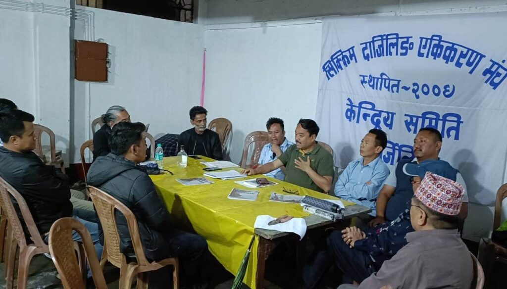 खरसाङ (निसं) : सिक्किम दार्जिलिङ एकीकरण मञ्चको सभा आज खरसाङमा सम्पन्न भयो। जीवन खातीको अध्यक्षतामा खरसाङको गोर्खा जनपुस्तकालय भवनमा सम्पन्न उक्त सभाको शुरूमा सिक्किम एकीकरण मञ्चको शुभचिन्तक एवम् सल्लाहकार साथै भागोपका संस्थापक सदस्य डा. राजासिंह लिम्बुको निधनमा श्रद्धाञ्जलि अर्पण गर्दै मौन धारण गरियो। उक्त सभामा सिक्किम दार्जिलिङ एकीकरण मञ्चको सांगठनिक विस्तार खरसाङ क्षेत्रमा पनि गर्ने साथै सिक्किम दार्जिलिङ एकीकरण विषयमा जनतालाई बुझाउने विषयमा चर्चा परिचर्चा गरियो। मञ्चको सांगठनिक विस्तारलाई अघि लैजानलाई खरसाङ क्षेत्रको लागि शाखा कमिटी गठन गरिने साथै संयोजकहरू राखिने विषयमा पनि सभामा चर्चा गरियो। सभामा सिक्किम दार्जिलिङ एकीकरण मञ्चको लागि दुईजना संयोजकहरू चयन गरियो, जसमा सोनादाको लागि जीवन खाती अनि खरसाङको लागि प्रकाश प्रधानलाई चयन गरियो।