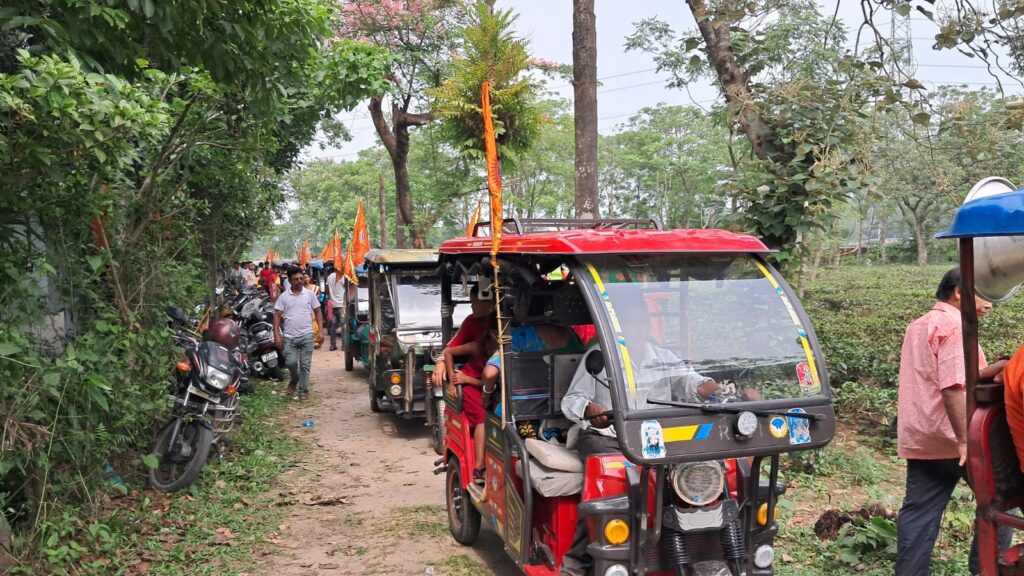 राजगञ्ज (निसं): लोकनाथ ब्रह्मचारीको 134औ तिरोधान दिवसको अवसरमा आज विश्व शान्तिको कामना गर्दै नगर परिक्रमा गऱ्यो। यस अवसरमा आयोजक समिति राजगञ्ज ब्लकको अकारीगछ बनभासा आदि लोकनाथ मन्दिर कमिटीद्वारा रंगारंग शोभायात्राको आयोजना गरियो। उक्त शोभायात्रा मन्दिर परिसरबाट शुरू भएको थियो भने यसपछि गंडार मोड़, राधारबाड़ी, पुटिमारी अनि बलराम हुँदै लगभग दस किलोमीटरको दूरी तय गरेर मन्दिर पुगेपछि यसको समापन गरियो। नगर परिक्रमा अवधि धेरै संख्यामा धर्मावलम्बीहरू टोटो तथा बाइक-स्कुटीमा सामेल भएका थिए।