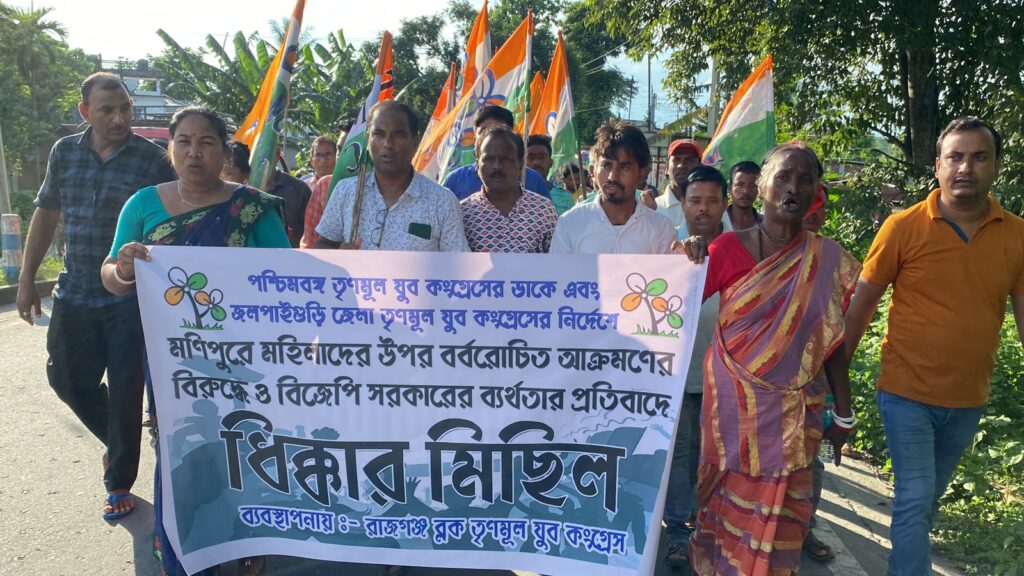 राजगञ्ज : मणिपुर घटनाको प्रतिवाद जनाउँदै आज तृणमूल कङ्ग्रेसद्वारा आमबारीमा विक्षोभ रैली निकाल्यो। राजगञ्ज ब्लकको बिन्नागढी ग्राम पञ्चायत अन्तर्गत अञ्चलमोडबाट एउटा रैली निकालेर आमबारी बजारसम्म पुगेपछि समापन गरियो। यसपछि आमबारी बजारमा एउटा पथसभाको आयोजना गरियो। उक्त रैलीमा धेरै संख्यामा तृणमूल कङ्ग्रेसका कार्यकर्ता तथा समर्थकहरूले अंश ग्रहण गरेका थिए। यस अवसरमा राजगञ्ज ब्लक तृणमूल कङ्ग्रेस युवा सभापति तुषार दत्तले भने, मणिपुरमा भएको दंगाको अवस्था र महिलाहरूको अपमानको विरुद्ध तृणमूल कङ्ग्रेसले देशभरिमै धिक्कार रैलीको आयोजना गरिरहेको छ।