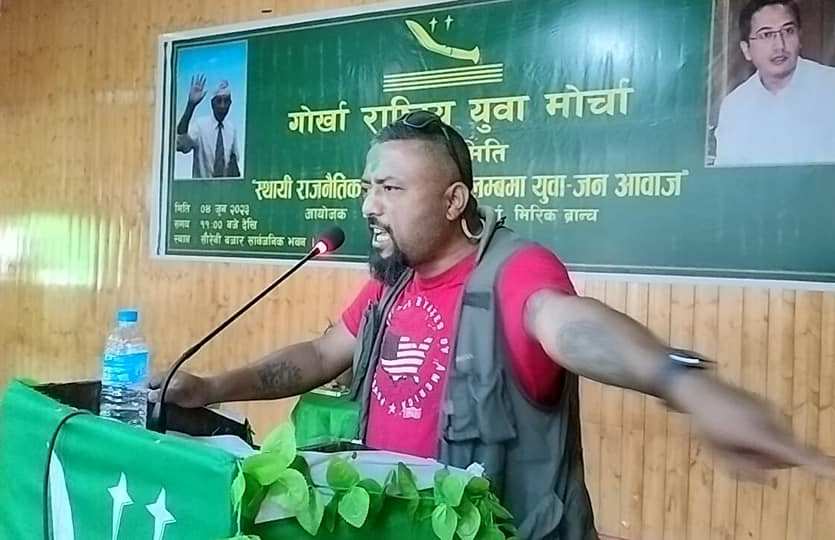मिरिक : गोर्खा राष्ट्रिय युवा मोर्चा मिरिक ब्राञ्च कमिटीको आयोजनामा आज मिरिकको सौरेनी बजारस्थित सार्वजनिक भवनमा जनसभा आयोजना गरियो। स्थायी राजनैतिक समाधान विलम्ब भएकोमा उक्त सभाको आयोजना गरिएको हो। उक्त जनसभामा दार्जिलिङ, खरसाङ, कालेबुङ अनि मिरिकको गोरायुमो प्रतिनिधि तथा कार्यकर्ताहरू धेरै संख्यामा उपस्थित थिए। जनसभालाई सम्बोधन गर्दै वक्ताहरूले मनसुन सत्रमा तथा 2023 अवधिमै स्थायी राजनैतिक समाधान हुनुपर्छ भनी बताए।