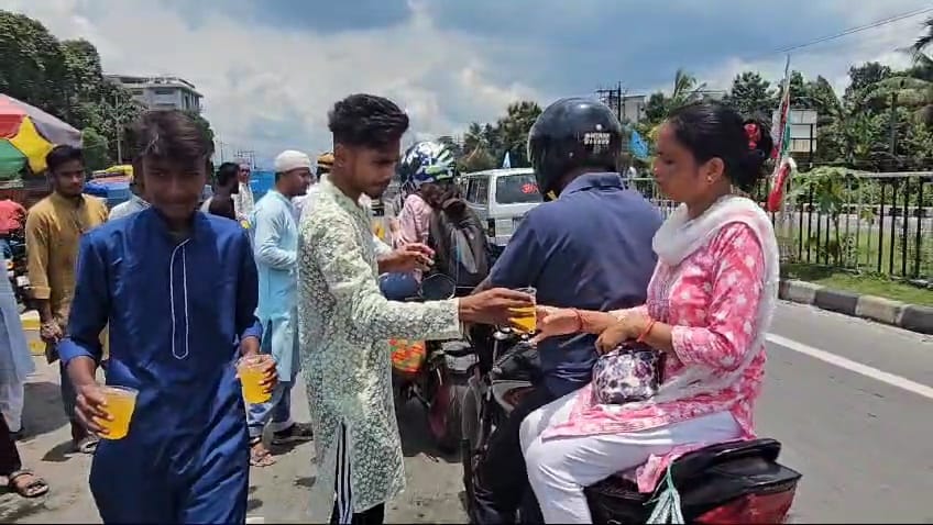फुलबारी (निसं): मुहर्रमको अवसरमा आज फूलबारीमा बाटोमा हिड्ने मानिसहरूलाई जुस वितरण गरियो। फुलबारीको एउटा स्वयंसेवी संस्थाको तर्फबाट उक्त पहल गरिएको थियो। प्राप्त जानकारी अनुसार संस्थाका सदस्यहरूले बुधवार फुलबारीको मर्डर मोडस्थित सिलगढी-जलपाईगढी राष्ट्रीय राजमार्गमा सबै जना बाटोमा हिड्ने मानिसहरूलाई शितल पेयजल शरबत पिलायो।