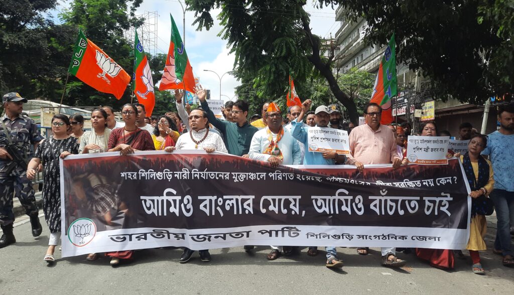 सिलगढी : सिलगढीमा नाबालिक छात्राको हत्या तथा सहरमा कानुन व्यवस्थाको विरोधमा भाजपा-को सिलगढी सांगठनिक जिल्ला कमिटीले आज रैलीको आयोजना गर्यो। सिलगढीको महानन्दा पुलबाट रैली शुरू गरेर विभिन्न पथहरूको परिक्रमा गरेपछि हासमी चोकमा पुगेर समापन गरियो। उक्त रैलीमा दार्जिलिङ जिल्लाका सांसद राजु विष्ट, सिलगढीका विधायक शङ्कर घोष, दार्जिलिङका विधायक निरज जिम्बा लगायत भाजपा सांगठनिक जिल्लाक नेता तथा कार्यकर्ताहरू उपस्थित थिए। नाबालिका छात्राको हत्याको घटनालाई केन्द्र गरेर राजु विष्टले राज्य सरकारलाई कटाक्ष कस्दै भने, सिलगढीमा भएको यस प्रकारको घटना मानव जातिको लागि लज्जाको विषय हो। मृतकको परिवारले न्याय चाहन्छ भने पुलिस तथा सरकारले अपराधीलाई बचाउने प्रयास गरिरहेको छ। आफ्नो भोट ब्याङ्क बचाउनको लागि तृणमूल सरकारले यस प्रकारको डर्टी पोलिटिक्स गर्न सक्छ भनी सांसद विष्टले बताए।