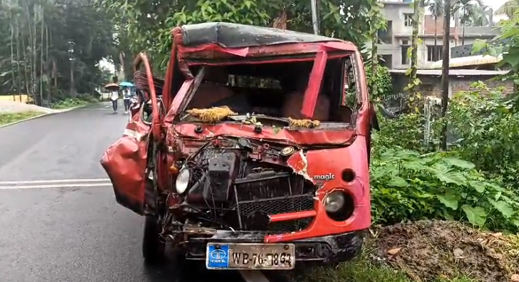 नक्सलबारी (निसं): म्याजिक र पिकअप भ्यान एक-अर्कोसित ठोक्किएपछि पिकअप भ्यानले नियन्त्रण गुमाएर यात्रु वाहक म्याजिकलाई धक्का दिएर भागेको बताइएको छ। उक्त घटना नक्सलबारीको स्कुलडाँगी चोकमा भएको हो भने उक्त घटनामा मोठ 6 जना घाइते भएका छन्। घाइतेहरूमा चालकसहित 3 जना विद्यार्थी पनि सामेल छन्। घटना पछि पुलिसले घाइतेहरुलाई उद्धार गरेर नक्सलबारी अस्पताल पठाइएको छ। यसैगरी, गम्भीर घाइते अवस्थामा रहेको म्याजिक चालकलाई उत्तर बङ्गाल मेडिकल कलेज एवम् अस्पताल पठाइदिएको छ। नक्सलबारी पुलिसले धक्का दिएर भाग्ने पिकअप वाहनको खोजी शुरू गरेको छ।
