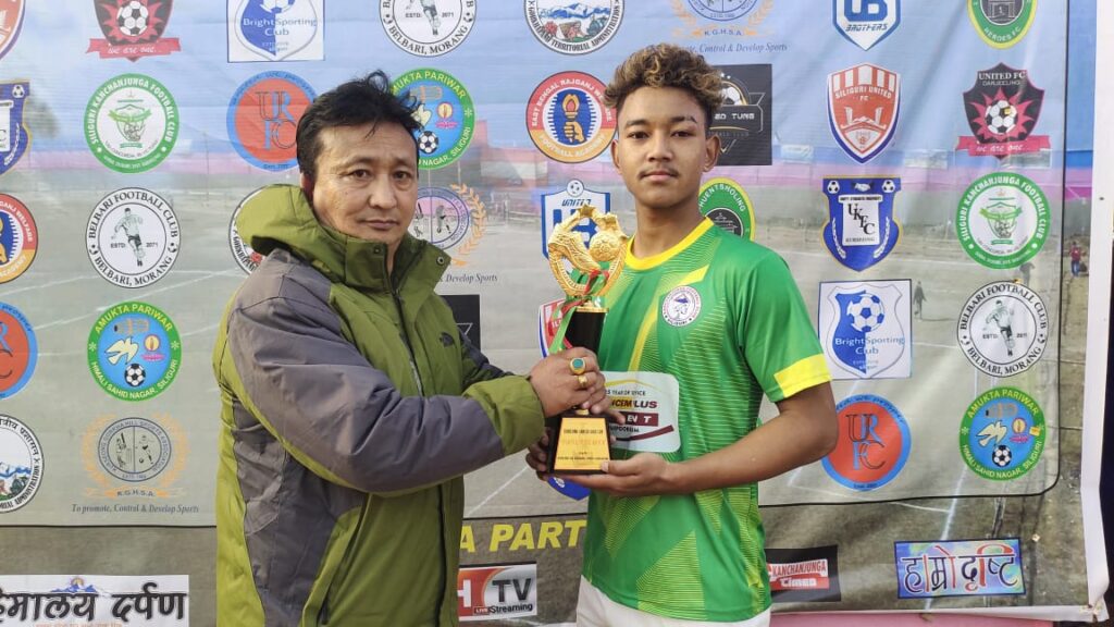 खरसाङ (निसं): केएफसीको खेलाडी जर्सी नम्बर 7 पुजन सुब्बाको ह्याट्रिकको दममा केएफसी एघारौँ सहिद गोल्ड कपको सेमिफाइनलमा प्रवेश गरेको छ। खरसाङ गोर्खा पार्वत्य खेलकूद संघ र युवा मामिला अनि खेलकूद विभागको संयुक्त आयोजनामा खरसाङको चानबारी खेल मैदानमा सम्पन्न भइरहेको एघारौँ सहिद गोल्ड कप अन्तर्गत हिजो फुतछ्योलिङ हिरोस भुटान बनाम कञ्जनजङ्घा फुटबल क्लब केएफसीमाझ खेल सम्पन्न भयो। यस खेलमा पहिलो हाफको 12 औँ मिनटमा केएफसीको जर्सी नम्बर 7 पुजन सुब्बाले गोल गरेर बढत दिलाए।त्यसको लगत्तै 43औँ मिनटमा भुटानको खेलाडी जर्सी नम्बर 18 लाकपाले गोल गरेर खेल बराबरीमा ल्याएको थियो।