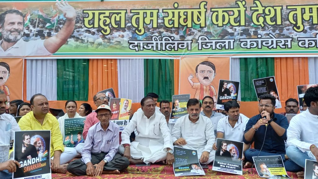 सिलगढी : राहुल गाँधीको सांसद पद खारेज गरेकोमा प्रतिवाद जनाउँदै आज दार्जिलिङ जिल्ला कङ्ग्रेसले धरना प्रदर्शन गर्यो। सिलगढीको हासमी चोकमा दार्जिलिङ जिल्ला कङ्ग्रेसका सदस्यहरू आज धरनामा बसेका छन्। यस अवधि तिनीहरूले राहुल गाँधीको सांसद पद खारेज गरेकोमा प्रतिवाद जनाए। गलत रूपमा राहुल गाँधीको सांसद पद खारेज गरेको तिनीहरूले आरोप लगाए। यस विषयमा दार्जिलिङ जिल्ला कङ्ग्रेस कमिटीका अध्यक्ष शङ्कर मालाकारले भने, राहुल गाँधीले गत केही महिनादेखि विभिन्न कार्यक्रमको माध्यमद्वारा देशवासीको मन जितेका छन्। केन्द्र सरकार आतङ्कित बनेर राहुल गाँधीको सदस्य पद खारेज गरेको हो। मोदी सरकारले लोकतन्त्रको हत्या गरेको छ।