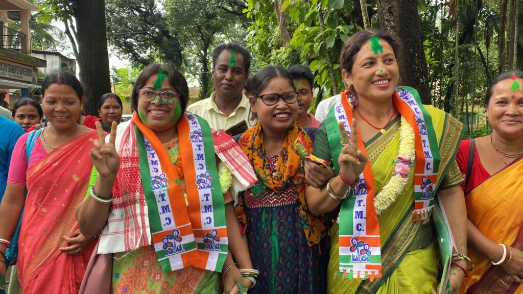 राजगञ्ज : राजगञ्ज पञ्चायत समितिका सभापतिको रूपमा रूपाली दे सरकार र सह-सभापतिको रूपमा कविता छेत्री शैवलाई चयन गरिएको छ। बोर्ड गठन गरेपछि पार्टीका कार्यकर्ता तथा समर्थकहरूले खुसियाली मनाइरहेका छन्। गत पञ्चायत चुनाउमा राजगञ्ज पञ्चायत समितिको 36 वटा आसनमध्ये तृणमूल कङ्ग्रेसले 27 वटा आसनमा जीत हासिल गरेको थियो भने 9 वटा आसनमा भाजपाले जीत हासिल गरेको छ। आज राजगञ्ज बीडीओ अफिसमा पञ्चायत समितिको बोर्ड गठन गरियो। बोर्ड गठनको लागि भोटिङको माध्यमद्वारा रूपाली दे सरकार पञ्चायत समितिको सभापति चयन गरियो। तिनले शिकारपुर ग्राम पञ्चायतको 9 नम्बर पञ्चायत समितिको सीटमा जितेकी थिइन्। तिनी गत पञ्चायत समितिको बोर्ड सदस्य पनि थिइन्। अर्कोतिर, कविता छेत्री शैवलाई सह सभापतिको रूपमा चयन गरियो। तिनले डाबग्राम 1 ग्राम पञ्चायतको 25 नम्बर पञ्चायत समितिको आसनमा जितेकी थिइन्। तिनी गत पञ्चायत समितिको बोर्ड सदस्य पनि थिइन्। आज बोर्ड गठन गरेपछि तृणमूलका कार्यकर्ता तथा समर्थकहरूले जीतको खुसियाली मनाएको देखियो।
