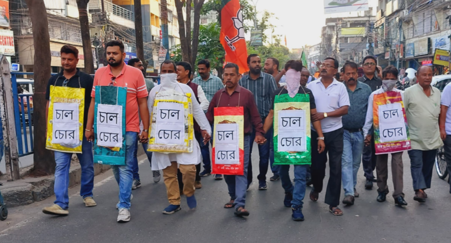 सिलगढी (निसं): राशन भ्रष्टाचार विरूद्ध भाजपाले राज्य भरिमा नै आवाज उठाइरहेको छ। यसैक्रममा आज सिलगढीमा पनि भाजपाले राशन भ्रष्टाचारमा सामेलहरूलाई पक्राउ गरिनु पर्ने माग गर्दै सडकमा ओर्लिए। आज साँझ सिलगढीको हाशमी चौकबाट गलामा चामलको बोराहरू झुन्डाएर, धानका विरूवाहरू बोकेर साथै ‘चोर धरो जेले भरो‘ अर्थात चोर पक्र जेल भर-को नारा लगाउँदै एउटा अनौठो प्रदर्शन तथा विरोध रैली निकाले। उक्त रैलीले हिलकार्ट रोड, सेभोक रोड र विधान रोडको परिक्रमा गरेपछि पुनः हाशमी चौकमा पुगेर समापन गरियो। उक्त रैलीमा सिलगढीका विधायक शंकर घोष, भाजपा सिलगढी साङ्गठनिक जिल्ला अध्यक्ष अरुण मम्डल, नगर निगमका पार्षद अनिता महतो, विवेक सिंह लगायत अन्य भाजपा नेताहरू उपस्थित थिए। यस अवसरमा विधायक शंकर घोषले भ्रष्टाचारीहरू सबै जनालाई पक्राउ गरेर सजाय दिनु पर्ने बताए।