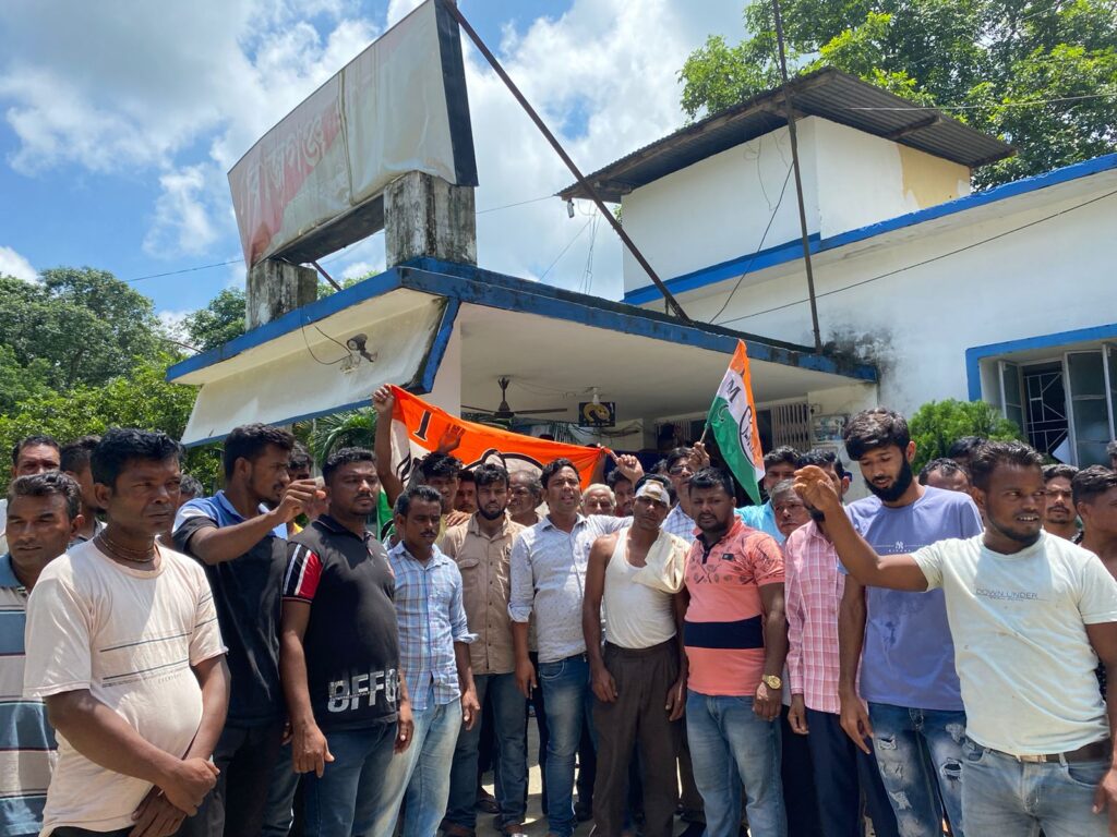 राजगञ्ज : सन्न्यासीकाटा अञ्चलका तृणमूल कार्यकर्ता तथा समर्थकहरूले पञ्चायत चुनाउ अवधि राजगञ्जको सन्न्यासीकाटामा आतङ्क फैलाएको आरोप लगाउँदै आरोपीहरूलाई चाँडै पक्राउ गरिनुपर्ने मागमा आज राजगञ्ज थानामा विक्षोभ प्रदर्शन गरे। प्राप्त जानकारी अनुसार हिजो सन्न्यासीकाटा अञ्चलको गिरनगछ र जुम्मागछ बुथमा ब्यालेट लुटपाट तथा हिंसाको घटना घटेको थियो। तृणमूलको आरोप अनुसार उक्त बुथमा विपक्षी पार्टीका दुष्कृतिहरूले आफूहरूमाथि हमला गरेको थियो भने घटनामा केही घाइते भएका छन्। यसैले आज सन्न्यासीकाटा अञ्चलका तृणमूल कार्यकर्ता तथा समर्थकहरूले पञ्चायत चुनाउ अवधि आतङ्क फैलाएको आरोप लगाउनको साथै आरोपीहरूलाई चाँडै पक्राउ गरिनुपर्ने मागमा राजगञ्ज थाना अघि विक्षोभ प्रदर्शन गरे।