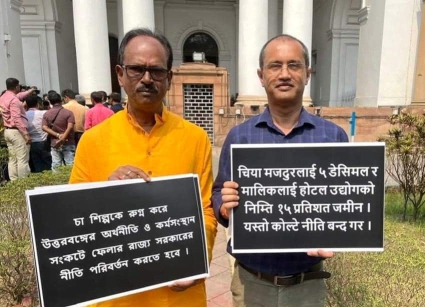 कलकता: चिया कमानका मजदुरहरूलाई मात्र 5 डेसिमल अनि कमानका मालिकहरूलाई होटल उद्योगको निम्ति 15 प्रतिशत जमीन दिएको खरसाङका भाजपा विधायक बीपी बजगाइँले आरोप लगाउँदै राज्य सरकारले यस्तो कोल्टे नीति बन्द गर्नु पर्ने माग गरेका छन्। तिनले आज पश्चिम बंगालको कलकतास्थित विधानसभा प्रांगणमा हातमा प्ला कार्ड बोकेर राज्य सरकारको उक्त कोल्टे नीतिको घोर विरोध जनाए।