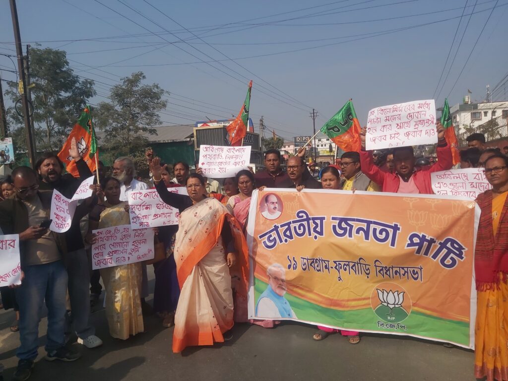 सिलगढी, 15 जनवरी (निसं): सिलगढी ईस्टर्न बाइपासमा लगातार दुर्घटनाहरू भइरहेका छन्, जसले गर्दा धेरैजना मानिसहरूले प्राण गुमाइसकेका छन् भने थुप्रै जना सडक दुर्घटनामा परेर घाइते भइसकेका छन्। यसैको विरोधमा डाबग्राम-फूलबारीका भाजपा विधायक शिखा च्याटर्जी सडकमा ओर्लिन्। आज शिखा च्याटर्जीको नेतृत्वमा भाजपा कार्यकर्ताहरू र समर्थकहरूले सडक जाम गर्दै विरोध प्रदर्शन गरे। लगभग एक घण्टा सडक जाम गरेर विरोध जनाइएको थियो। जानकारी अनुसार, सोमबार साँझ ईस्टर्न बाइपास मोड क्षेत्रमा भएको सडक दुर्घटनामा 5 वर्षीय नानीले ज्यान गुमाएको थियो। यस वाहेक, लगातार भइरहेका दुर्घटनाहरूको विरोधमा बुधबार विधायक शिखा च्याटर्जी र भाजपा नेता-कार्यकर्ताहरू घटनास्थलमा पुगेर सडक जाममा सामेल भए। यस अघि पनि विधायकले ईस्टर्न बाइपासमा स्ट्रीट लाइट र ट्राफिक व्यवस्थाको माग गर्दै सडकमा उत्रिएका थिए, तर त्यसपछि कुनै सुधार भएको छैन। विधायकले आरोप लगाए अनुसार, प्रशासनले वास्ता नगरेको कारण लगातार दुर्घटनाहरू भइरहेको छ भने मानिसहरूको ज्यान गइरहेको छ।
