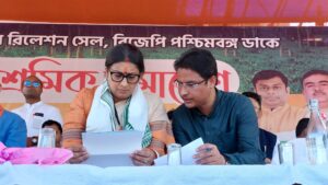 सिलगढी : चियाकमानका श्रमिकहरूको विविध समस्यालाई लिएर भाजपाले आज सिलगढीको डागापुरमा चियाश्रमिक समावेशको आयोजना गर्यो। उक्त समावेशमा केन्द्रीय मन्त्री स्मृति ईरानी, सांसद राजु विष्ट लगायत केही शीर्ष नेताहरू उपस्थित थिए। चियाश्रमिक समावेशलाई सम्बोधन गर्दै मन्त्री स्मृति ईरानीले तृणमूल कङ्ग्रेस र राज्यको मुख्यमन्त्री ममता ब्यानर्जीमाथि कटाक्ष कसिन्। तिनले चियाश्रमिकहरूलाई कर्मयोगी भन्दै सम्बोधन गरिन्। तिनले अझ भनिन्, बङ्गाल सरकारले उत्तर बङ्गालका चिया श्रमिकहरूलाई धोका दिएको छ। चुनाउको समयमा चियाकमानका श्रमिकहरूलाई धेरैवटा वाचाहरू गरे तापनि चुनाउपछि ती सबै वाचाहरू भुलिसकेको छ।