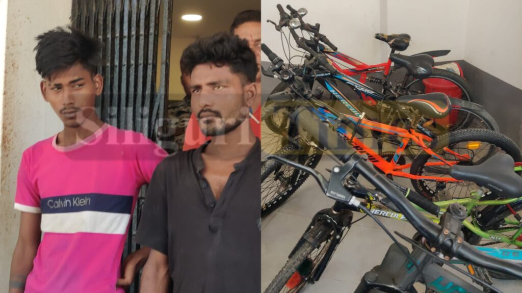 सिलगढी (निसं): पुलिसले चोरी भएको 11 वटा साइकलसहित दुई जना चोरलाई पक्राउ गरेको छ। पक्रा पर्ने चोरहरूले सिलगढी सहरका विभिन्न ठाउँबाट साइकल चोर्ने गर्दथे। महङ्गो होस् अथवा सस्तो साइकल होस् तिनीहरूले मौका छोपेर ताला भत्काएर साइकल चोर्दथे। यस्तै घटनाक्रममा हिज आइतबार सिलगढीको उत्तर भारत नगर इलाकाको एकजना एयरफोर्स कर्मीको साइकल चोरी भएपछि तिनले यसबारे सिलगढी पुलिस थानामा अभियोग दर्ता गरे। यसपछि जाँचमा जुटेको पुलिसले रवि सरकार र कुणाल सिंह उर्फ काचा नाम गरेका दुई जनालाई पक्राउ गरेको छ। तिनीहरू कालारामजोत निवासी रहेको बताइएको छ। तिनीहरूबाट पुलिसले मोठ 11 वटा चोरी भएको साइकल उद्धार गरेको छ। आज पक्रा पर्ने आरोपीहरूलाई सिलगढी अदालतमा पेश गरियो।