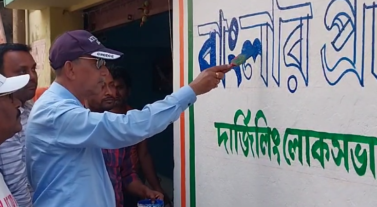 सिलगढी : लोकसभा चुनाउलाई लिएर राज्यमा राजनीति पार्टीहरूको चहलपहल शुरू भएको छ। प्रार्थीहरूको नाम घोषणा नगरिकनै देवाल लेखन कार्य जोडतोडले गरिसकेको छ। यसै क्रममा आज बिहान सिलगढीका मेयर गौतम देवले यहाँको प्रधाननगर, हाकिमपाडामा देवाल लेखन कार्य शुरू गरे। मेयर देवले आज देवाल लेखन कार्य गरेपछि चुनाउ प्रचार शुरू गरे। यस अवसरमा मेयरले भने, हाल प्रार्थीको नाम घोषणा गरिएको छैन तर चाँडै नै प्रार्थीको नाम घोषणा गरिनेछ। आगामी 7 दिनको अवधिमा सिलगढीको 47 वटा वार्ड एवम् डाबग्राम फुलबारी विधानसभा अन्तर्गत जलपाईगढी लोकसभा केन्द्रको विभिन्न इलाकामा देवाल लेखन कार्य पुरा हुनेछ। यस वर्ष लोकसभा चुनाउमा दार्जिलिङ र जलपाईगढी लोकसभा केन्द्रमा जितेर ममता ब्यानर्जीलाई उपहार दिन चाहन्छौँ।