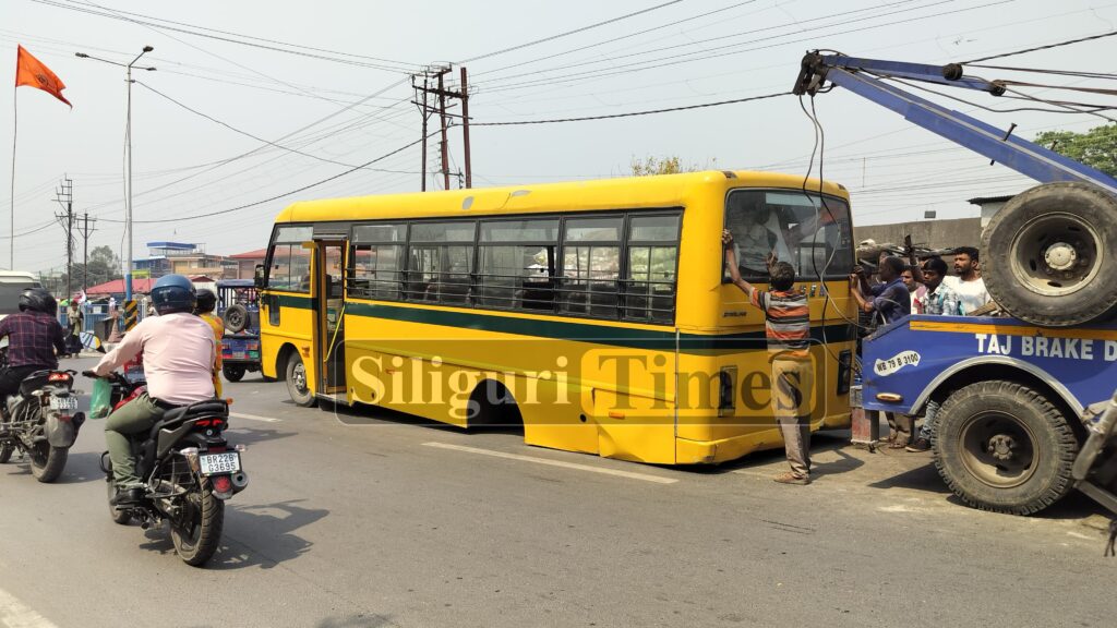 सिलगढी, 1 अप्रेल (निसं): सिलगढीमा कुदिरहेको एउटा स्कूल बसको पछिल्लो चक्काहरू अचानक फुस्कियो। तथापि,उक्त घटनामा कसैलाई पनि कुनै हानि पुगेको छैन। यो दुर्घटना आज बिहान जलपाईमोड नजिक भएको हो। बसमा स्कूलका विद्यार्थीहरू सवार थिए।