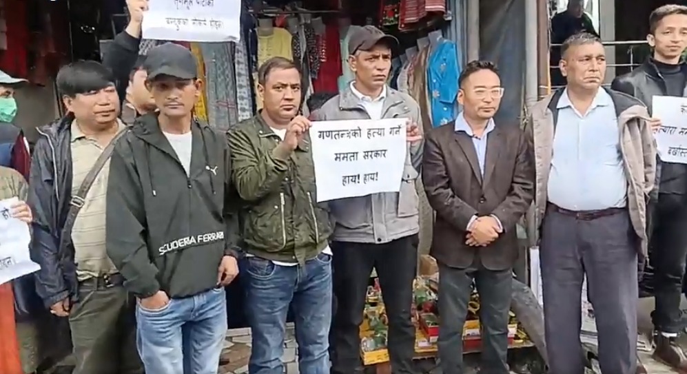 सुकिया (निसं): भारतीय जनता पार्टीले आज 21 जुलाईको दिन जिल्लाको प्रत्येक खण्ड विकास कार्यालय अघि धरना प्रदर्शन कार्यक्रम गरिने अगावै घोषणा गरेको थियो भने अर्कोतिर, जिल्ला प्रशासनले कुनै प्रकारको अप्रिय दुर्घटना हुनसक्ने सम्भावनलाई ध्यानमा राखेर दार्जिलिङ जिल्लाको सबै खण्ड विकास कार्यालयमा आज बिहानदेखि साँझ 6 बजीसम्म 144 धारा लागू गरेको छ। यसको साथै सबै खण्ड विकास कार्यालय परिसरमा पुलिस बल तैनाथ गरिएको छ। यसै क्रममा 144 धारा अनि पानीको पर्वाह नगरी आज सुकिया पोखरी खण्ड विकास कार्यालय अघिल्तिर हातमा प्ला कार्ड बोकेर भारतीय जनता पार्टीका समर्थकहरूले धरना प्रदर्शन गरे। अर्कोतिर, खण्ड विकास कार्यालयमा पुलिस तैनाथ गर्नको साथै कठोर सुरक्षा व्यवस्था अप्नाइएको छ।