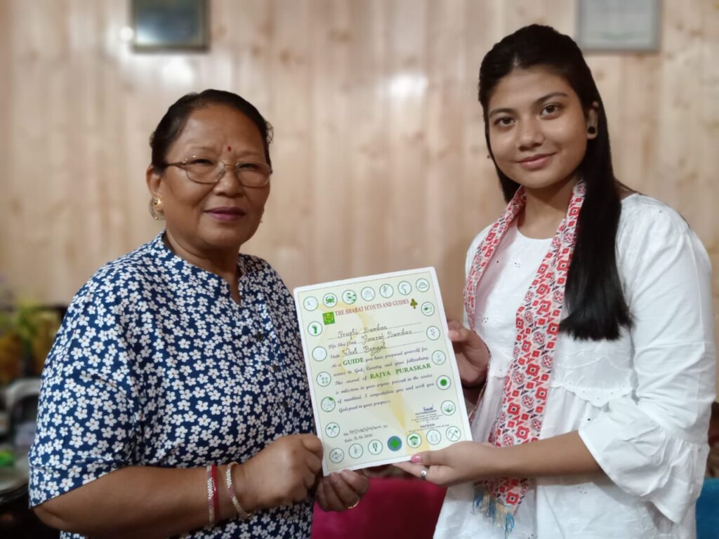 खरसाङ (निसं) : खरसाङ महकुमा अन्तर्गत तीनधारे निवासी प्राप्ति सुन्दासले भारत स्काउण्ट एण्ड गाईडको गाईडमा राज्य स्तरीय पुरस्कार प्राप्त गरेकी छन्। तिनले गाइडको परीक्षामा उत्तीर्ण गरेर गाईडमा राज्य स्तरीय पुरस्कार प्राप्त गरेकी हुन्। तीनधारे निवासी युवराज सुन्दासकी छोरीले गत 22 जुलाईको दिन कोलकतामा सम्पन्न पुरस्कार वितरण कार्यक्रममा उक्त राज्य स्तरीय पुरस्कार ग्रहण गरेकी हुन्। तिनी उक्त पुरस्कार वितरण समारोहमा उपस्थित नभए तापनि सन्त जोसेफ कन्या विद्यालय खरसाङ भारत स्काउण्ट एण्ड गाइडकी शिक्षिका प्रमिला प्रधानले ग्रहण गरेर ल्याई दिएकी थिइन् भने नानी प्राप्ति सुन्दासले उनै शिक्षिकाबाट उक्त पुरस्कार ग्रहण गरेकी थिइन्। प्राप्ति सुन्दासले 10 जून 2019 मा खरसाङमा सम्पन्न भारत स्काउण्ट एण्ड गाइडको परीक्षा दिएकी थिइन् तर कोविडको कारणले उक्त पुरस्कार वितरण गरिएको थिएन। प्राप्तिले सन् 2019 मा खरसाङको सेन्ट हेलेन स्कूलमा अध्ययनरत् छँदा नै उक्त परीक्षा दिएकी थिइन्। यसपाली भारत स्काउण्ट एण्ड गाइड पश्चिम बंगालको आयोजनमा कोलकोताको टाउन हलमा सम्पन्न पुरस्कार वितरण कार्यक्रममा अंश ग्रहण गरेका छन्। बंगालभरिमा पुरस्कृतहरू भेला 2019-20, 2020-21 र 2021 -22 को पुरस्कारहरू प्राप्त गरेका थिए। यसपाली बंगालभरिका 350 जना पुरस्कृतहरूसितै प्राप्ति सुन्दासले पनि गाईण्डमा प्राप्त गरेकी हुन्। उक्त राज्य स्तरीय पुरस्कार राज्यको खाद्य अनि वितरक मन्त्री एंव भारत स्काउण्ट एण्ड गाइडको संरक्षक रथिन घोषको बाहुलीबाट प्रदान गरिएको थियो। आफ्नी छोरी प्राप्तिले भारत स्काउण्ट एण्ड गाईडको परीक्षामा गाईडमा यसरी राज्य स्तरीय पुरस्कार प्राप्त गरेर आफ्नो परिवार, तीनधारे क्षेत्र, आफ्नो स्कूल र सबैलाई गौरान्वित बनाएकोमा पिता युवराज सुन्दासले खुशी व्यक्त गरेका छन्।