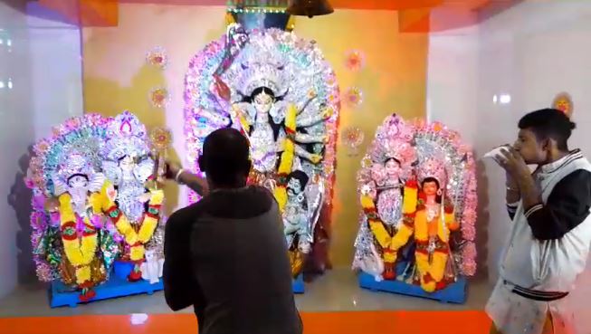 खरसाङ (निसं): तीनधारेको शंकर निवासस्थित दुर्गा मन्दिरमा दिव्य ज्योति संघले दुर्गा पुजाको आयोजना गर्यो। यस वर्ष उक्त मन्दिरमा 103औं दुर्गा पुजाको आायोजना भइरहेको छ। यो मन्दिरमा सन् 1920 देखि नै दुर्गा पुजा गर्न शुरू भएको हो भने उक्त मन्दिरको दुर्गा पुजा दार्जिलिङ जिल्लाकै पहिलो पुजा मानिएको छ। उक्त समय यहाँ रहेका बंगाली परिवारले दुर्गा पुजा शुरु गरेको बताइएको छ। त्यस समय पुजारी गणेश बाजेले पुजा गर्दै आइरहेका थिए भने हाल मुख्य पुजारीको रूपमा पण्डित बालकृष्ण शर्माले पुजा अर्चना गर्ने गरेका छन्। उक्त मन्दिरमा हिजो दुर्गा माताको मूर्ति स्थापना गरिएको छ भने आज फुलपातीको दिन सप्तमीमा पुजा अर्चना शुरु हुने भएको छ। यस विषयमा तीनधारेका सन्तोष लामाले बताएअनुसार सप्तमीको दिनदेखि पुजा शुरु गरेर अष्टमी र नवमीको दिन पुजा अर्चना गरेपछि नवमीकै दिन हवन पनि गरिनेछ। आज यस मन्दिरबाट निकालिएको डोली पुजा अर्चना गरेर चढाउने भएको तिनले बताए।